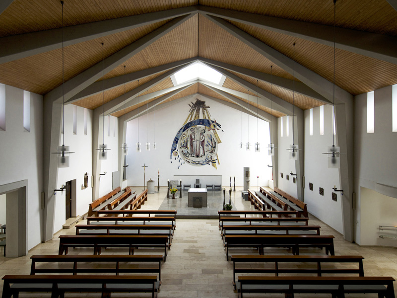 Vor dem Hintergrund des geänderten Liturgieverständnisses und der geistigen Übereinstimmung von Raum und Geschehen wurde die Kirchenraumgestaltung von innen nach außen mit einem neuen Belichtungskonzept entwickelt.