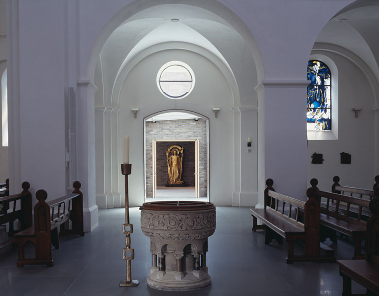 Der Erweiterungsbau (Atrium) dient der Ausbildung eines Statioganges für den liturgischen Einzug, zur Erschließung der Krypta und Schaffung der erforderlichen Sakristeien und Nebenräume in adäquater Größe.