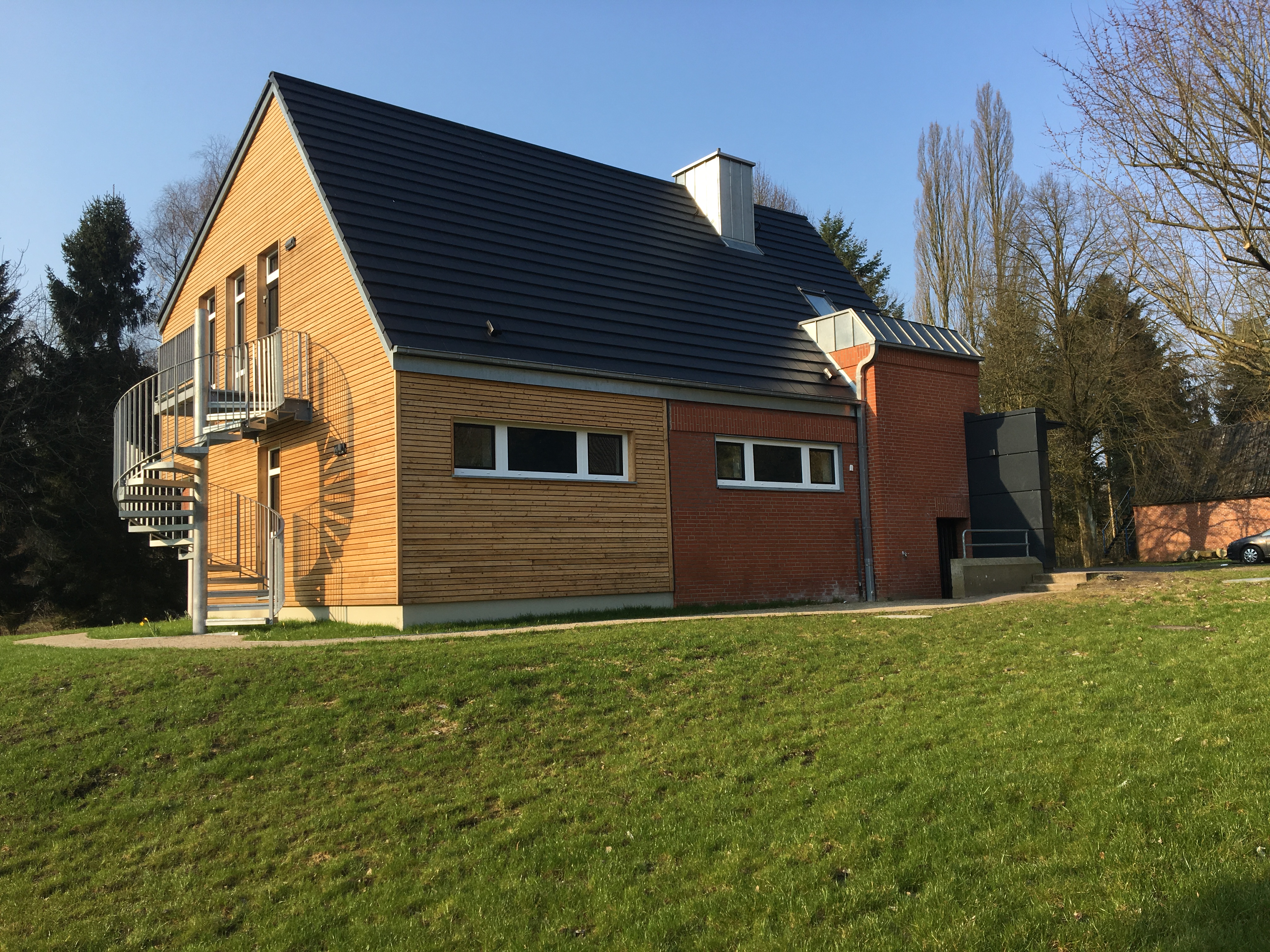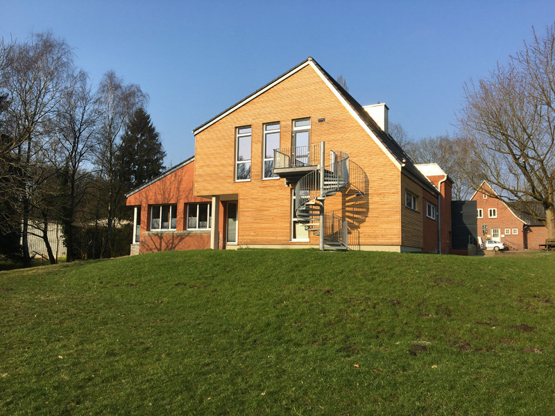 Sanierung und Erweiterung des Gemeindehauses. (Urheber Reinhold Wuttke Architekten). Planungsprämisse war, die Substanzverbesserung inkl. energetischer Sanierung, sowie Erweiterung des Musikraumes und Schaffung eines großzügigen Wirtschaftsteils.