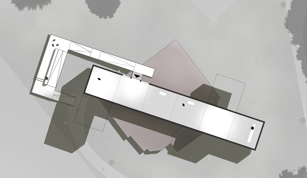 und macht die für das Gebäude charakteristisch ausgerichteten Öffnungen der Blickachsen erlebbar.