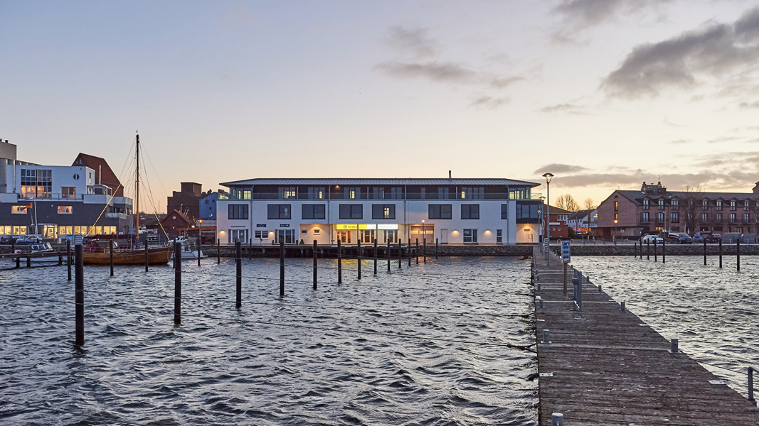 Getreu der ehemaligen Nutzung des Bestandsgebäudes für Charterfahrten,
