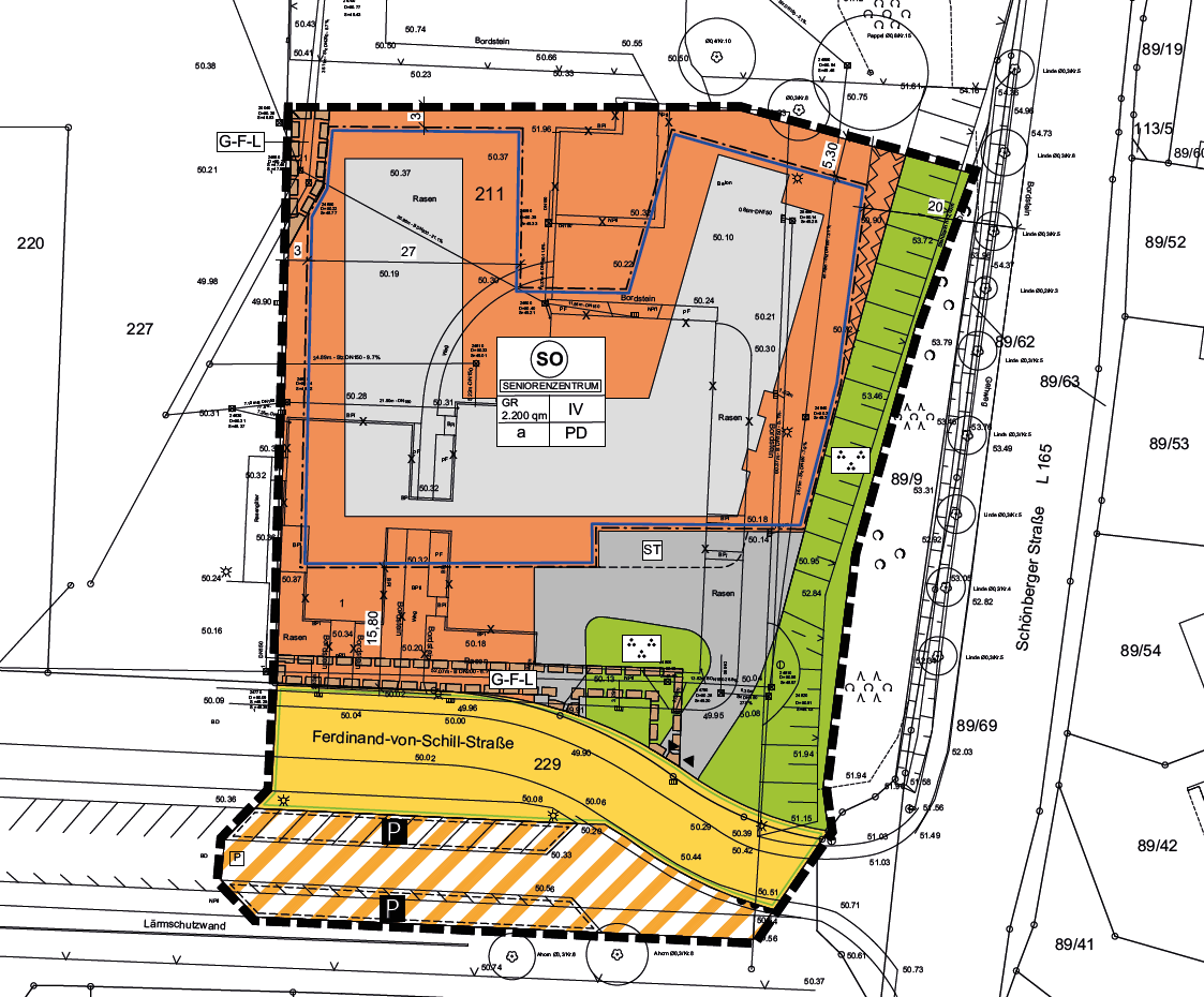 Das Planungsziel sieht vor, die planungsrechtliche Voraussetzung für den Bau eines Seniorenzentrums zu schaffen.
