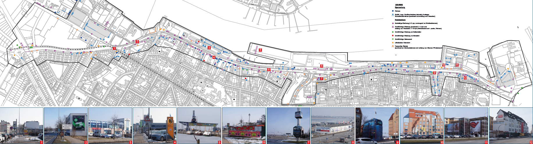 Aufgabe des Gutachtens ist es, die Besonderheiten des Stadtbildes in dem Untersuchungsgebietes zu analysieren und in diesem Zusammenhang Werbeanlagen in den unterschiedlichen typischen Stadtbereichen, Straßen und Plätzen herauszuarbeiten. Im Ergebnis der Analyse sind Vorschläge zur Sicherung der Besonderheiten des Stadtbildes unter Berücksichtigung unterschiedlicher Funktionen der Werbung und moderner Ansprüche formuliert. Die Analyse diente als Grundlage für die 2018 in Aufstellung befindliche Gestaltungssatzung für den „Historischen Altstadtbereich“ Rostocks. Weiterhin ist die Ortsbildanalyse für künftige formelle und informelle Planungsverfahren (Bauleitplanung, Konzepte, etc.) in diesen Bereich heranzuziehen und zu berücksichtigen.