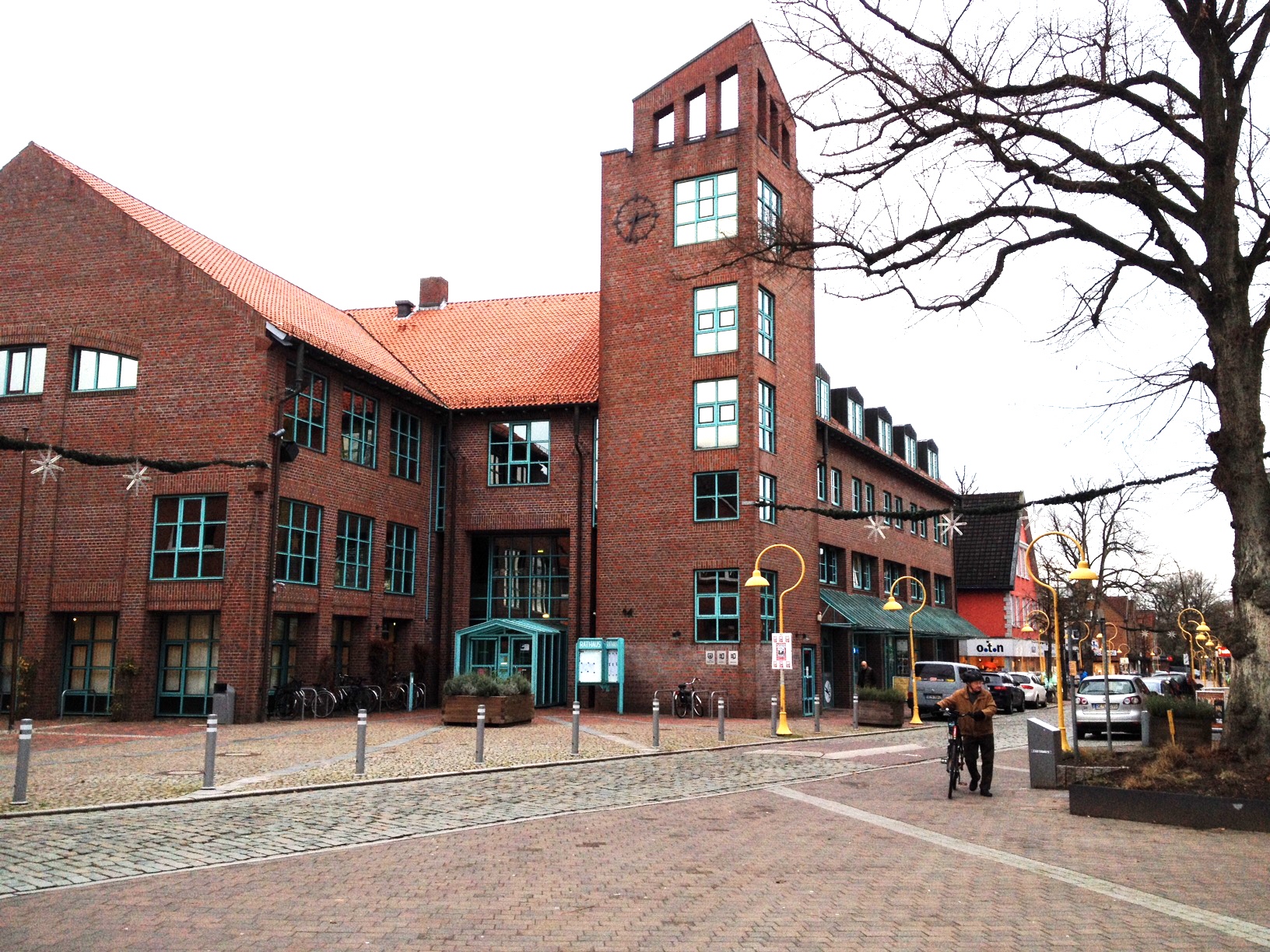 Neben den Büroräumen der Stadtverwaltung befindet sich zusätzlich eine Ladenzeile im Erdgeschoss parallel zur Holstenstraße.